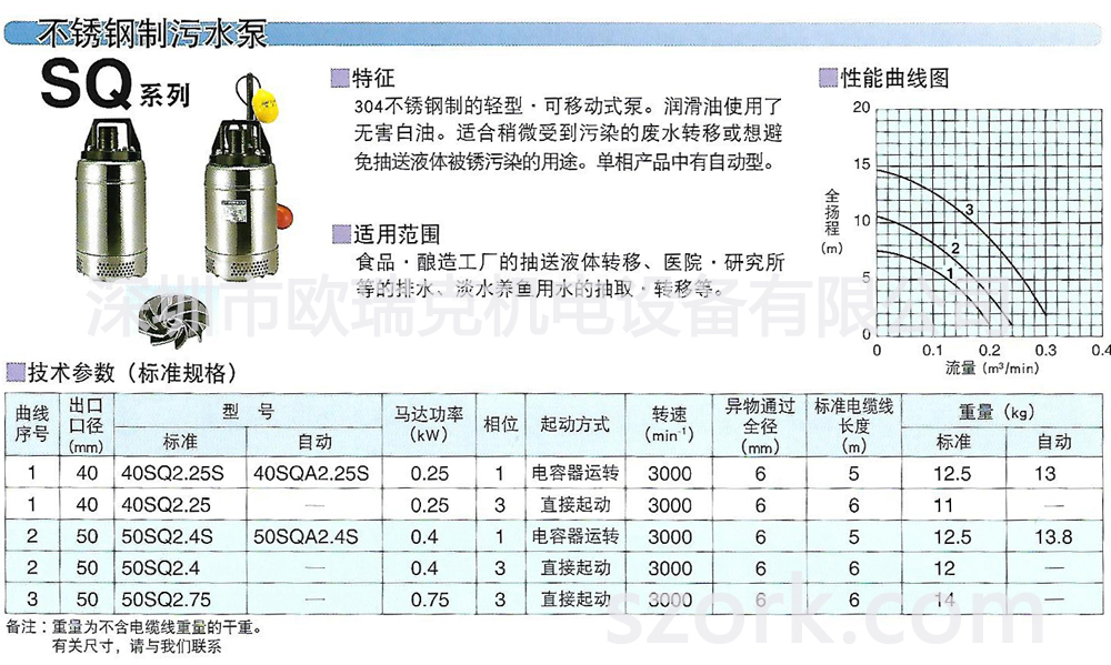 不銹鋼制污水泵SQ系列